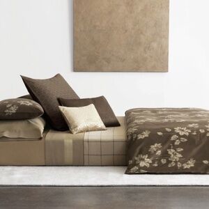 A calming retreat! The Calvin Klein Luster Bands sheet transforms your bed