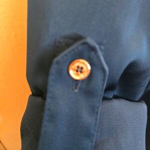 Almost New! Absolutely beautiful Calvin Klein deep green button down blouse. Size Medium. Can wear as mid length or long length sleeve. Picture does not show true dark green beautiful hue. All offers considered!