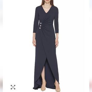 Calvin Klein Gorgeous Embellished Faux-Wrap Gown Indigo Blue Size 2 NWOT
