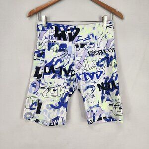 Calvin Klein Graffiti Performance Bike Shorts Women's L Compression Y2K Athleisure