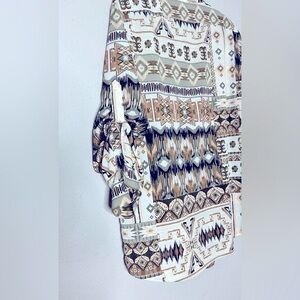 Calvin Klein Graphic Brown and Green SunBlouse with Mandarin Collar