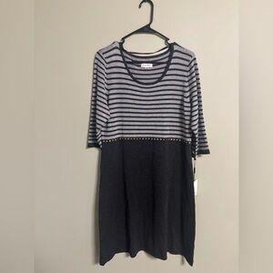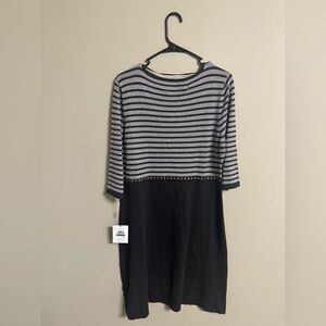 Calvin Klein Gray Black Striped Jersey Dress Size Large New Knee Length