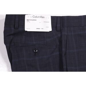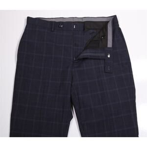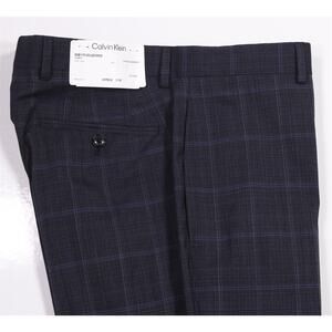 Calvin Klein Gray Blue Windowpane Plaid Flat Front Wool Dress Pants 32 New!