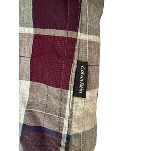 Calvin Klein Gray Burgundy Plaid Liquid Cotton Button Down Shirt - Size M Mens