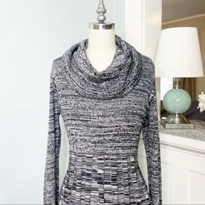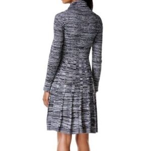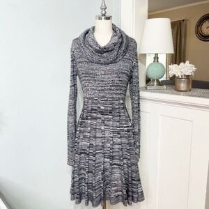 Calvin Klein Gray Cowl Neck Sweater Dress. Fit and flare style. Stretchy and very soft! Pleated skirt. Black, and gray marled knit. New without tags. Size medium.