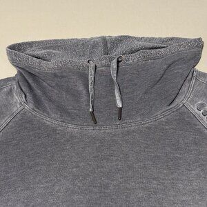 This Calvin Klein cowl-neck pullover sweatshirt blends effortless comfort with a modern grunge vibe. The soft washed-gray fabric and intentionally faded finish give it a laid-back, lived-in look that’s perfect for casual wear.