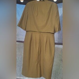 Sophisticated olive green dress paired with a matching jacket. Ideal for formal events.