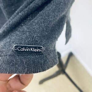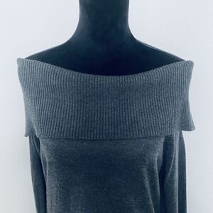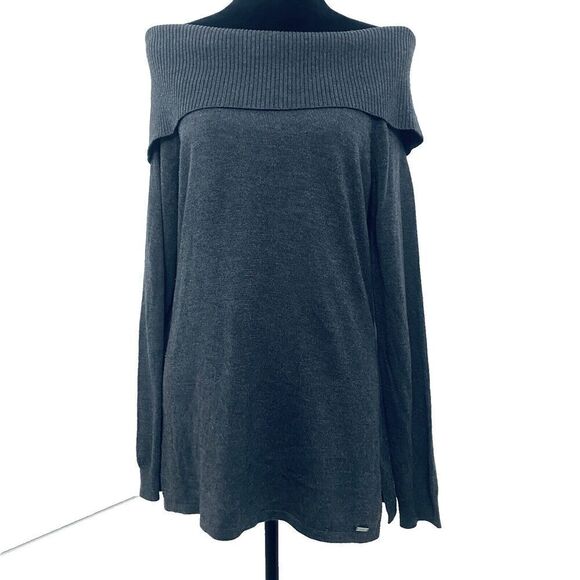 Calvin Klein Gray Foldover Off Shoulder Long Sleeve Knit Sweater Women's Medium