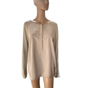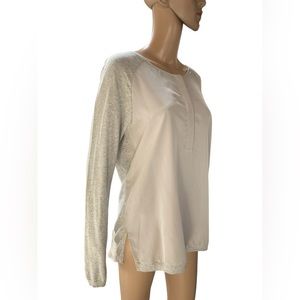 Super cute Calvin Klein Gray Jersey Knit Long Sleeve Top Shirt Half Button Front Size LG