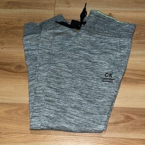 Comfortable gray joggers with a drawstring waist. Features Calvin Klein logo.