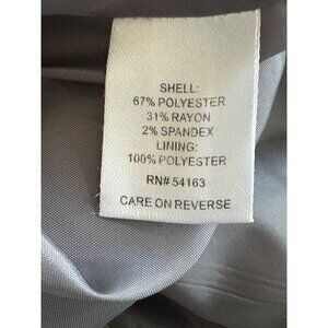- Shell: 67% polyester, 31% rayon, 2% spandex; lining: 100% polyester