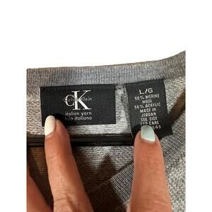 Calvin Klein Gray Long Sleeve V-Neck Merino Wool Blend Sweater Women Sz L