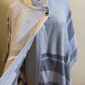 Calvin Klein Gray Poncho Sweater Mock Neck One Button Open Arms Sz S/M