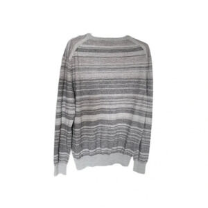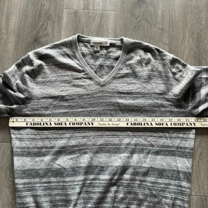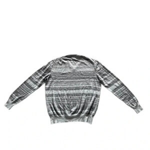 Calvin Klein Gray Striped Long Sleeve V Neck Merino Wool Blend Sweater womens XL