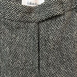 These Calvin Klein trousers feature a sophisticated gray hue with a classic straight leg cut, perfect for formal occasions. Crafted with a subtle pattern, they offer a refined and polished look. Ideal for elevating your wardrobe with timeless elegance.