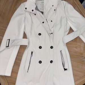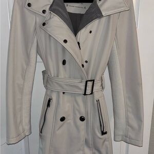 Calvin Klein Gray Trench Coat with Double-Breasted Design and Matching Belt