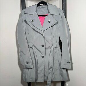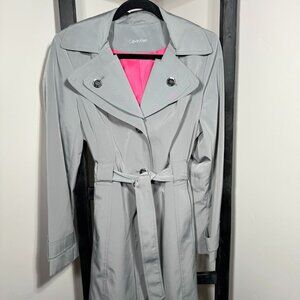 Calvin Klein Gray Trench Coat with Pink Lining – Belted Classic