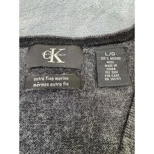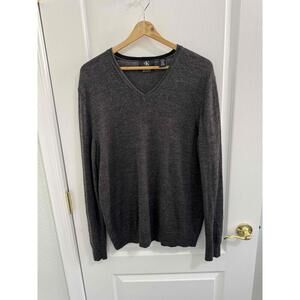 Calvin Klein Gray Vneck Long Sleeve Merino Wool Pullover Classic Sweater Large