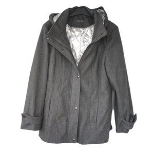 Calvin Klein Gray Wool Blend Hooded Coat Size medium