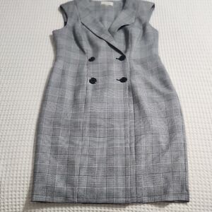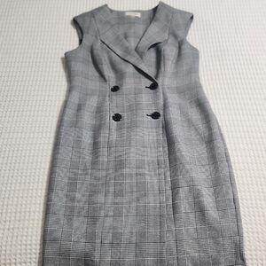 Calvin Klein Gray and Black Asymmetrical Midi Dress with V-Neck and Cap Sleeves