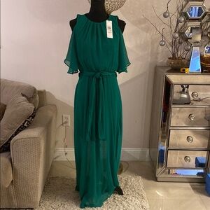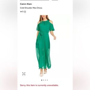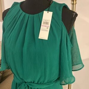 Calvin Klein Green High Low Sundress with Cold Shoulder size 6 NWT