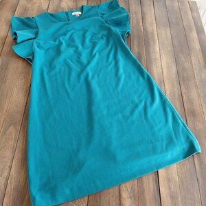 Calvin Klein Green Scuba Flutter Sleeve Stretch Dress - Size 12 (D7)