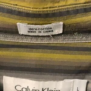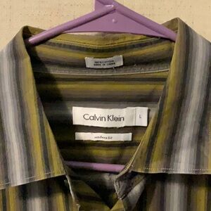 Calvin Klein Green and Brown Casual Button Down Shirt