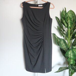 Calvin Klein Grey Ruched Sheath Dress Size 12 Sleeveless Classic Work Office