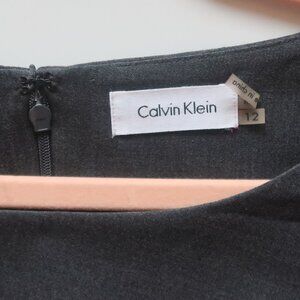 ๐ช career dress, formal wear, business attire, office chic, minimalist fashion, timeless grey dress, body-skimming silhouette, classic sheath, Calvin Klein elegance, cocktail outfit, modern workwear