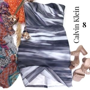 Calvin Klein Grey Side Pleated Topp Strapless Dress sz 8