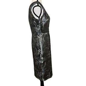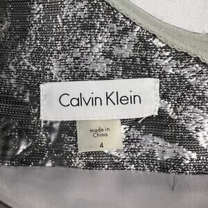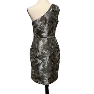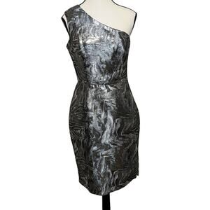 Calvin Klein Gunmetal Silver Jacquard One Shoulder Midi Cocktail Dress Size 4