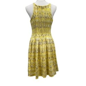 Fully lined, rear zip entry. Hidden pockets at each side seam. Fit and flare shape
