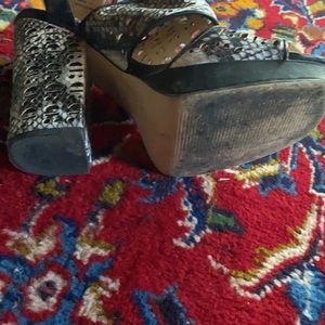 Calvin Klein Heeled Sandal Size 8.5 Buckle closure at ankle Small platform Black and white in color 4” heal