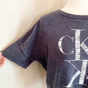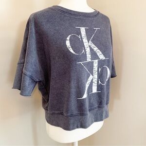 Calvin Klein Heather Navy Cropped Knit Sweatshirt Top Logo Size Small Athleisure