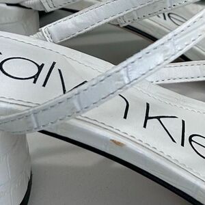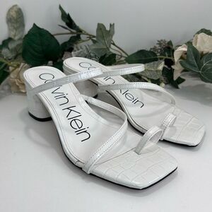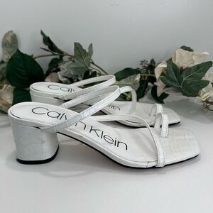 Calvin Klein Heeled sandals Women's Size 5.5 White Strappy Belma Square Toe Leather