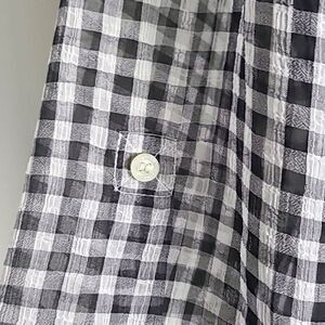 Calvin Klein High-Low Sheer Buttondown Blouse, Black & White Check, Size Medium
