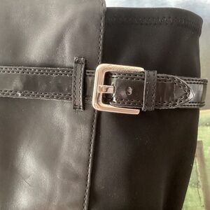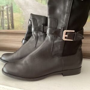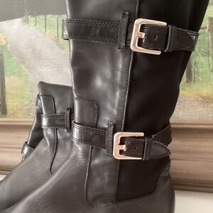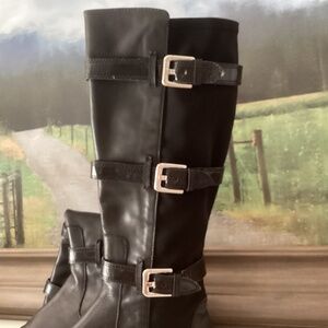 Calvin Klein Hillary Black Leather Stretch Buckled Tall Riding Boots 8.5 M City Moto Mod. Excellent condition.