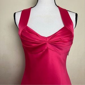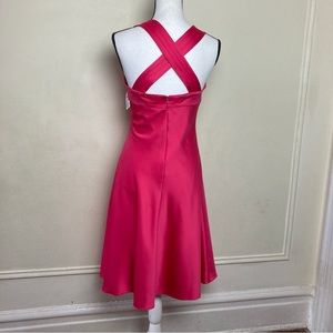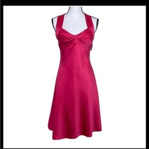 Calvin Klein Hot Pink Satin halter cross back slip dress size 5/6 Empire Waist