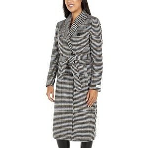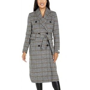 Calvin Klein Houndstooth Double Breasted Wool Women's Walker Coat Size large new