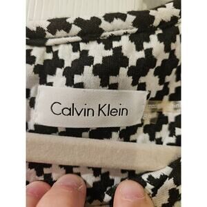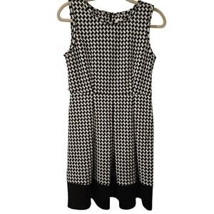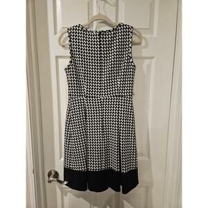 Calvin Klein Houndstooth Fit Flare Dress 8P Petite Black White Sleeveless Career