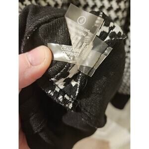 Keywords: Retro mod dress, timeless workwear, sheath dress alternative, houndstooth office dress, vintage-inspired career dress, black white monochrome, classic business attire, fall winter layering, dress with structure, versatile work-to-dinner style, church service outfit, holiday party look, Calvin Klein petite dress, office chic fashion.