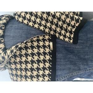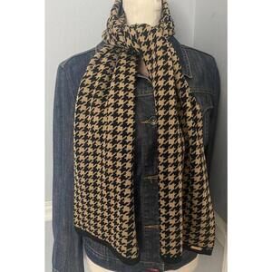Classic black and beige houndstooth pattern knit scarf by Calvin Klein.