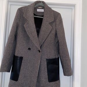 Calvin Klein Wool-blend Houndstooth Pea Coat, worn twice.