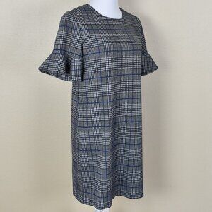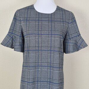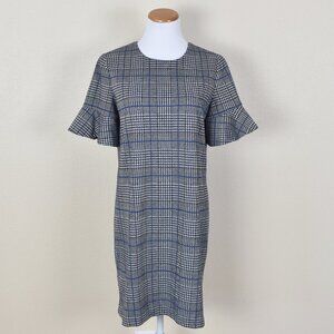 Calvin Klein Houndstooth Plaid Ruffle Sleeve Shift Dress - 8