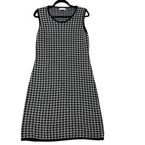 Calvin Klein Houndstooth Sleeveless Knit Sweater Dress Gray Black Size L