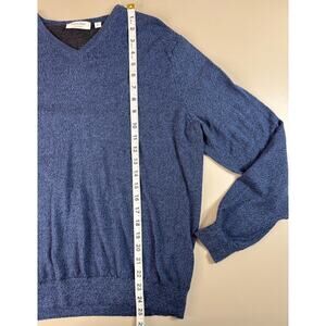 Calvin Klein Italian Merino Sweater Heathered Blue Mens Large V Neck Classic