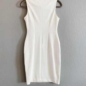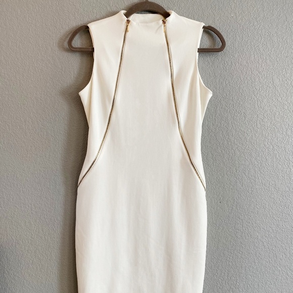 Fabulous midi dress with double zipper front. Zippers go to neckline. Worn once. Fits more like a 0 in my opinion.