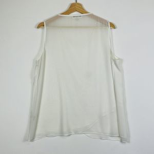 Calvin Klein Ivory Sheer Chiffon Sleeveless Wrap Front Blouse Top Womens Large