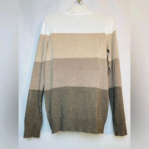 Calvin Klein Ivory taupe tan striped Colorblock Soft turtleneck sweater