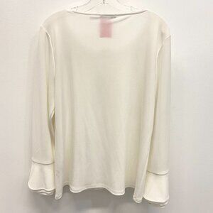 Calvin Klein ivory w/keyhole embellished w/gold bar long sleeves w/bell cuff blouse, Size L
